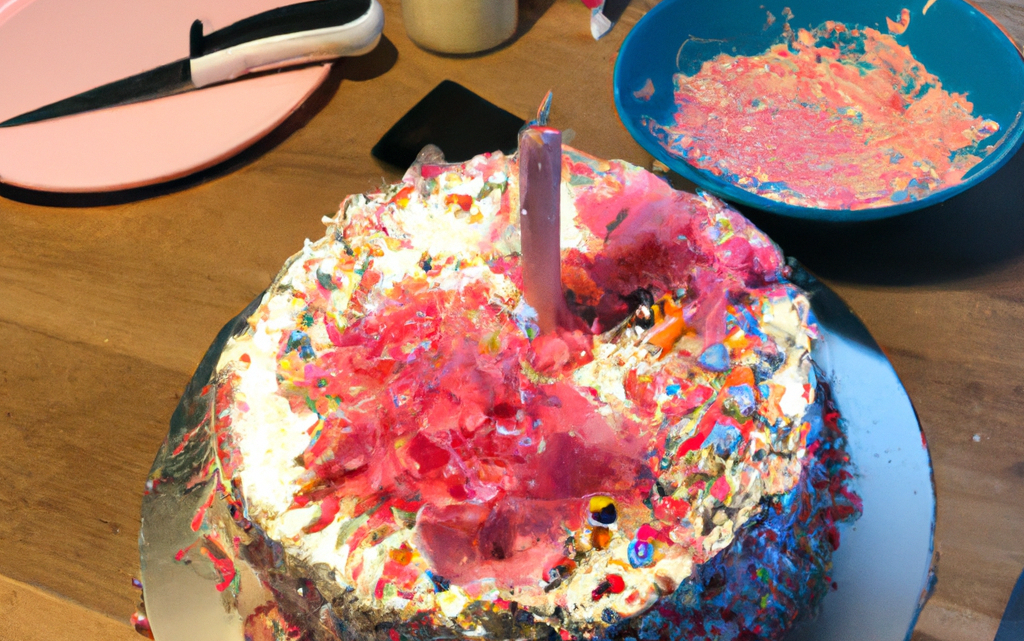 Maak gebruik van slagroom om figuren op de cake te maken. Zo kun je bijvoorbeeld een dolfijn of een eenhoorn maken.
